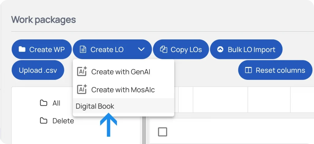 The menu entry for Digital Books in the Create LO button has been updated to read Digital Book instead of eBook to better differentiate Avallain Author Digital Books from ePub books.